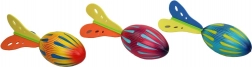 Sættet med kasteraketter giver enkel og fængende underholdning til daglige udendørs lege. Takket være den lette konstruktion i holdbar plast er raketterne nemme at håndtere selv for mindre børn, og de kræver ingen batterier – det er bare at tage dem og kaste.