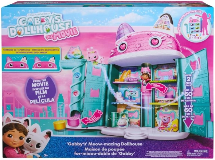 Sættet indeholder en Gabby-dukke, møbler og tematiske katte-tilbehør som toilet, køleskab og rutsjebane. Der er også et leveringstårn med knap til at afsløre skjulte skatte samt klistermærker til at dekorere interiøret. Huset kan åbnes i bredden og giver et stabilt område til fælles leg.
