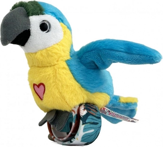 Den søde interaktive papegøje i blå giver børn masser af sjov. Gentager ord, synger en fuglesang og vifter med vingerne. Takket være fastgørelsen kan du nemt sætte den på hånden og lege både hjemme og på farten.