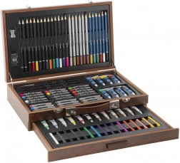 Indholdet er sammensat til at dække hele spektret af kunstneriske behov – fra tegning til akryl og akvarel. Du kan nemt prøve tørre og våde teknikker, lag-på-lag og farveblanding. Med den praktiske emballage er sættet velegnet til hjemmet, skolen og på farten.