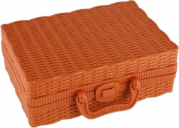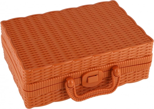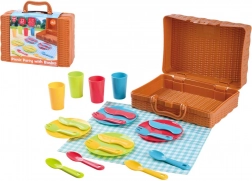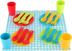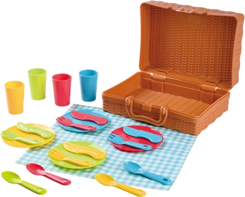 Dette picnic-sæt til børn med kurv giver små kokke alt, hvad de behøver til den perfekte picnic. I den robuste plastkurv finder du tallerkener, krus og bestiksæt til fire personer samt et stilfuldt tæppe med ternet mønster. Sættet er lavet af let, nemt rengørligt plast, hvilket gør det ideelt til daglig leg.