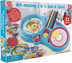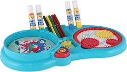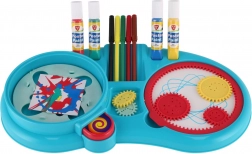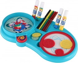 Dette kreative tegnesæt kombinerer de populære teknikker spirograf og spin‑art i ét overskueligt arbejdsområde. Med tandhjul tegner du præcise spiraler og mandalaer, mens den drejelige bakke gør det muligt at skabe unikke sprøjtede billeder med legende farveeffekter. De organiserede rum holder alle redskaber på plads, så børnene kan koncentrere sig om at skabe.