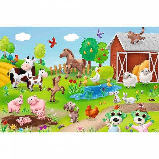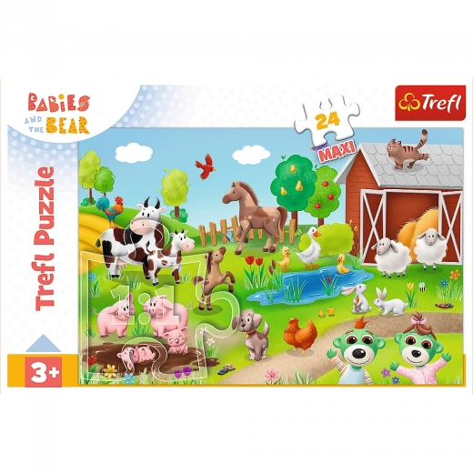 Stort børnepuslespil med motivet BOBASKI OG DYR fra Trefl indeholder 24 ekstra store brikker til små hænder. Når det er samlet, bliver billedet 60 × 40 cm. Kvalitetsmaterialer, special kalandreret papir med glans for behagelig samling og økologisk produktion i Polen. Velegnet til børn fra 3 år.