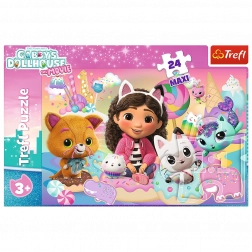 Opdag et sjovt børnepuslespil med motivet GABBY’S DOLLHOUSE fra mærket TREFL. Sættet indeholder 24 ekstra store brikker, ideelle til små hænder og de første pusleoplevelser. Når det er samlet, bliver billedet 60 × 40 cm. Kvalitetsudførelse, holdbare materialer og en overflade med let glans for nemmere samling vil glæde enhver lille fan af katteverdenen.