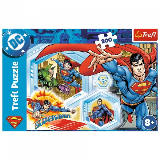 Dette stilfulde puslespil med SUPERMAN-motiv vil glæde både små og store tegneseriefans. Med 300 omhyggeligt fremstillede brikker får du både behagelig afslapning og træning af tålmodighed og koncentration. Når det er samlet, opstår der et imponerende billede på 60 × 40 cm, som egner sig perfekt til udstilling.