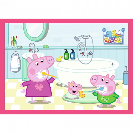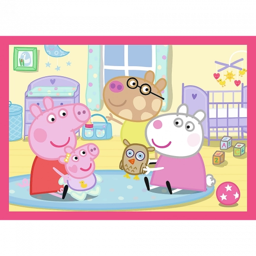 Oplev glæden ved at lægge puslespil med de populære figurer fra PEPPA PIG. Dette 4 i 1-sæt indeholder fire selvstændige motiver med forskelligt antal brikker, hvilket understøtter trinvis udvikling af motorik, tålmodighed og logisk tænkning. Hvert færdigt billede måler 285 × 205 mm – ideelt til små hænder.