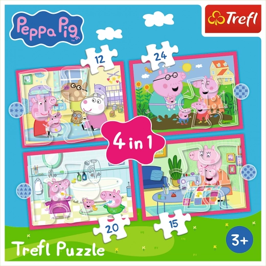 Farverigt sæt med fire puslespil med motiver af PEPPA PIG vil glæde små eventyrelskere. Indeholder 4 separate puslespil med forskelligt antal brikker (12, 15, 20 og 24), så de passer til forskellige færdighedsniveauer. Når de er samlet, bliver billederne 285 × 205 mm. Fremstillet i Polen af miljøvenlige materialer, egnet til børn fra 3 år.