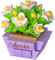 Delene klikkes let sammen, så selv begyndere kan være med. Vælg mellem flere varianter – fra kaktus over blomstrende buketter til elegante lilla aks. Hver model gør indtryk og skaber en 3D-blomsterkomposition i pastelfarver.