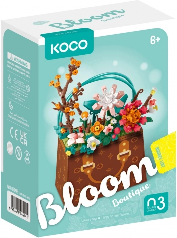 KOCO mini byggesættet Blomst i håndtaske er et fremragende valg for børn fra 6 år og voksne, der elsker at skabe og holde af originale dekorationer. Af 267 dele samler du en imponerende blomst gemt i en elegant håndtaske – ideel til udstilling derhjemme eller på kontoret.