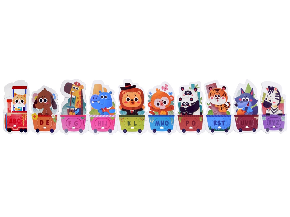 Opdag en legende måde at introducere barnet for bogstaver og dyr på – et farverigt læringspuslespil i form af et tog. Hver vogn repræsenterer et bogstav og et tilsvarende dyr, så læring bliver til en sjov togtur. Sættet indeholder 40 store og holdbare brikker, og det støtter bogstavgenkendelse, ordforrådsudvikling, logisk tænkning og finmotorik. Når puslespillet er samlet, måler det 118,2 × 21,7 cm og er ideelt til børn fra 3 år.