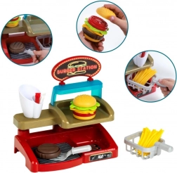 Burger shop-sættet er et omhyggeligt designet køkkensæt til små kokke, der giver en autentisk oplevelse af at tilberede yndlings-fastfood. Børn kan frit kombinere de enkelte dele og lave en burger præcis efter deres smag, supplere med pommes frites og vælge ketchup eller mayonnaise – ligesom i et rigtigt køkken.