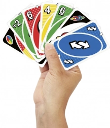 Denne udgave tilføjer nye interaktive regler, som øger tempoet og underholdningen, for eksempel kortet “Peg på en anden”, hvor hver spiller peger på en anden – og den person trækker et kort. Find match efter farve, tal eller symbol, mens du forsøger at komme af med alle dine kort først. Husk at råbe “UNO!”, når du kun har ét kort tilbage!