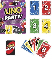Få endnu mere sjov med kortspillet UNO Party – en specialudgave til større grupper. Det spilles som klassisk UNO, men med flere kort, nye interaktive regler og skør feststemning. Råb “UNO!”, når du kun har ét kort tilbage, og nyd de actionfyldte øjeblikke med det særlige kort “Peg på en anden”.