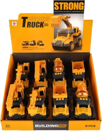 Modellen fås i 4 varianter og sælges i en praktisk boks med 8 stk. – perfekt til butikker, vuggestuer/børnehaver og hjemlige samlinger. Et fremragende valg til børn fra 3 år, som kan lide at transportere materialer, planlægge byggeri og udvikle fantasi samt finmotorik.