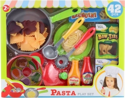 Dette plastiksæt med mad og service er ideelt til de første køkkeneventyr. Børn kan lege, at de laver mad, serverer og betjener, og dermed efterligne de voksnes daglige aktiviteter. Sættet er let, sikkert og designet til små børnehænder.
