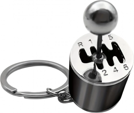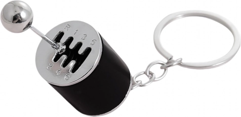 Denne originale nøglering i designet af en manuel gearkasse kombinerer praktisk anvendelse med et attraktivt udseende. Præcis udførelse, metalmaterialer og sort finish skaber et elegant tilbehør, som samtidig fungerer som en antistress-hjælp – gearstangen kan flyttes glidende mellem positionerne.