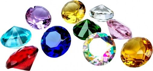 Sæt med farvede dekorative diamanter i æske, 10 stk.