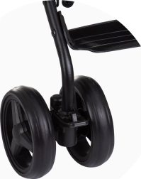 - Sikkerhed: 5-punkts seler med polstring, baghjul med sammenkoblet bremse