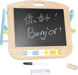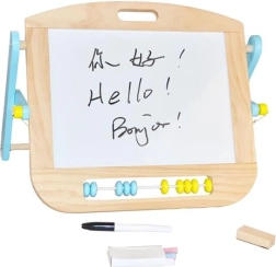 Den multifunktionelle bordtavle er et fremragende redskab til de første tegne-, skrive- og læringsaktiviteter. Med to overflader kan børn nemt skifte mellem at tegne med tusch og kridt, træne finmotorikken og udvikle fantasien. Den integrerede tofarvede kugleramme understøtter tidlige matematiske færdigheder.
