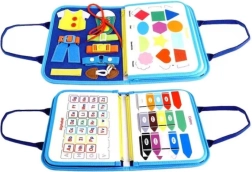 Opdag, hvordan én bog kan bringe underholdning og udvikling i ét! Den sensoriske busy-bog med dinosaurtema tilbyder mangfoldige motoriske aktiviteter – knapper, spænder, lynlåse, velcro og snørebånd – og hjælper med at udvikle finmotorik, logisk tænkning, koncentration og sansemæssig perception. Den er blød og let, ideel til både rejser og hjemmebrug, og perfekt som gave til børn fra 3 år.
