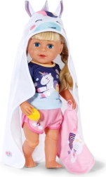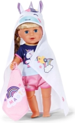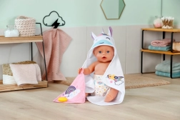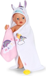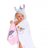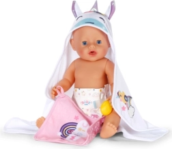 Forkæl din dukke med maksimal komfort efter badet med dette søde BABY born håndklædesæt. Det indeholder to bløde stykker med motiv af enhjørning og regnbue, hætte med print og små ører. Ideelt til dukker i størrelsen 36 cm og 43 cm. Blødt materiale, magisk enhjørningemotiv og praktisk hætte til stilfuld tørring og leg.