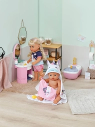 Håndklæderne er lavet af et blødt og behageligt materiale, som er skånsomt mod små børnehænder og yndlingsdukker. Sættet er kompatibelt med dukker på 36 cm og 43 cm, så det er et perfekt supplement til dit tilbehør til hverdagsleg.