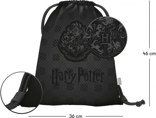 Stilfuld pose til sko og småting med motivet Harry Potter Hogwarts i elegant sort. Den er lavet af et robust, aftørringsvenligt materiale og har snørelukning med stærke snore, som samtidig muliggør behagelig bæring på ryggen.
