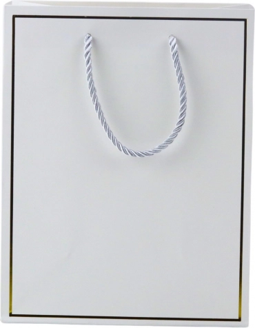 Denne gavepose skiller sig ud med et minimalistisk, men markant look og en diskret gylden kant langs kanterne. Den er fremstillet af kvalitetspapir, som sikrer holdbarhed og pålidelighed, også når du bærer tungere gaver. Takket være den klassiske form og de universelle farver passer den både til kvinder og mænd og til gaver af alle typer – til fødselsdage, mærkedage, jubilæer og firmaarrangementer.