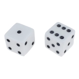 Praktisk sæt med 100 hvide spilleterninger med klassisk markering 1–6, ideelt til skoler, klubber og hjemmebrug. Terningerne af holdbar plast med sorte, letlæselige prikker og en behageligt glat overflade sikrer lang levetid og komfort under spil.