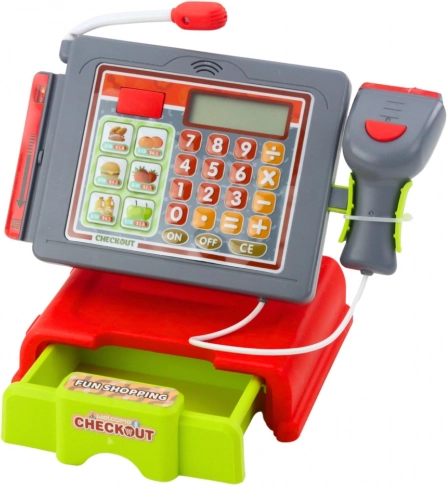 Det legende kasseapparat til børn med rigt tilbehør forvandler børneværelset til en lille butik. Det byder på lys- og lydeffekter, en fungerende scanner, mikrofon og numerisk tastatur for en realistisk købmandsleg. Det styrker tællefærdigheder, kommunikation og kreativitet.