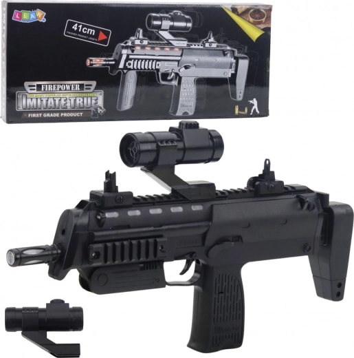 Træd ind i actionens verden med et legetøjs-maskingevær på 41 cm. Det realistiske look, lys- og lydeffekter samt den aftagelige sigte stimulerer fantasien hos enhver lille politibetjent eller soldat. Takket være den solide udførelse i kvalitetsplast er legetøjet sikkert og velegnet til daglig leg.