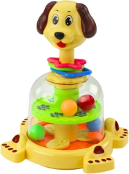 Denne interaktive legetøjsfigur formet som en sød hund skaber en dynamisk effekt af hvirvlende kugler, som fanger børns opmærksomhed og motiverer til aktiv leg. Den enkle betjening ved at trykke på hovedet udvikler grebsstyrke og præcision og lærer samtidig årsag og virkning.