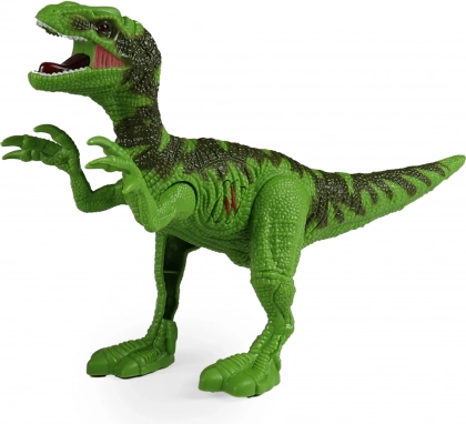Begiv dig ud på et forhistorisk eventyr. Den terrængående bil på 21 cm kører i friløb, hvilket gør den ideel til hurtige forfølgelser både på værelset og i haven. Den realistiske dinosaur imponerer med lysende effekter og brøl, som aktiveres ved tryk på en knap, og dens bevægelige lemmer øger autenticiteten.