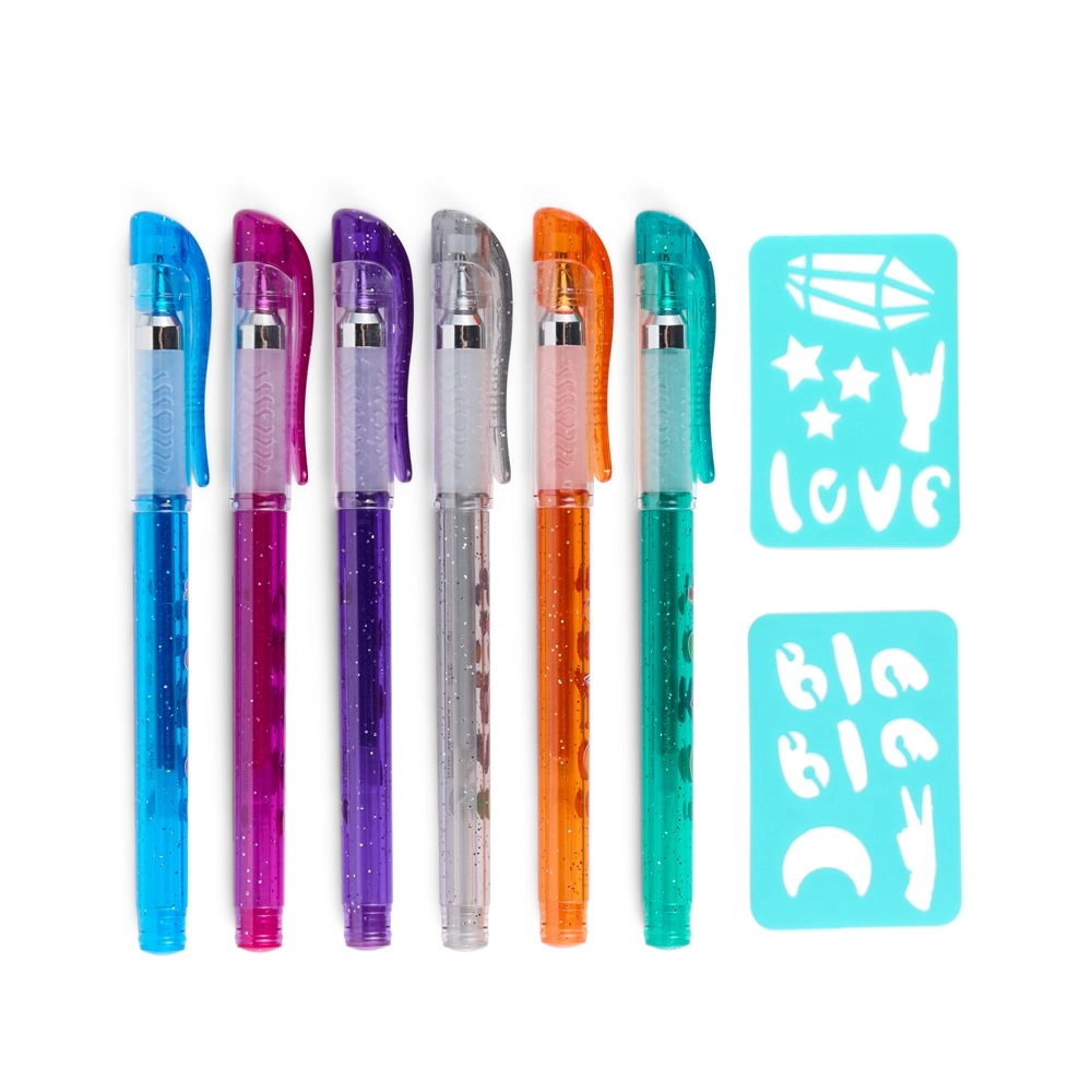 Opdag en sjov måde at udtrykke din kreativitet på. Tatoveringssættet med duftende gelpenne byder på seks markante nuancer – pink, blå, lilla, grøn, orange og sølv – som står flot på huden. Med de to medfølgende skabeloner kan du nemt lave både simple og mere avancerede motiver, eller designe dit eget look efter humør.