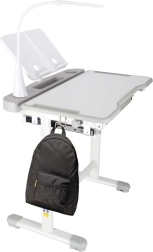 Gennemtænkte detaljer hjælper med at holde orden og fokus: udtræksskuffe med ruminddeling til skolesager, bogstativ til komfortabel læsning, krog til rygsæk og plads til drik. Overfladen af robust MDF i kombination med metal og plast er let at vedligeholde og klar til daglige skole- og kreative aktiviteter.