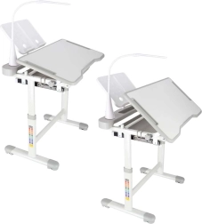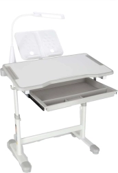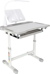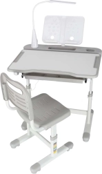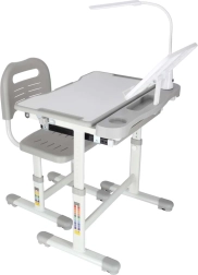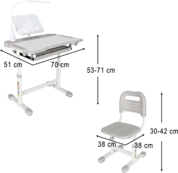Praktisk børneskrivebord med stol og USB LED-lampe i grå farve skaber et ergonomisk og ryddeligt sted til læring og kreativitet. Højden på bord og stol kan problemfrit tilpasses barnets vækst. Der er vipbar bordplade, stor skuffe med organizer, taskeholder, plads til kop og bogstativ. LED-lampen tilbyder 3 lysindstillinger og 3 lysstyrkeniveauer for korrekt belysning både dag og nat.