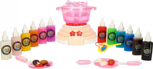 Oplev sjoven med det kreative sæt Magisk Køkken, som gør det muligt at skabe unikke 3D-figurer af farvede geler. Takket være en særlig opløsning formes gelen hurtigt, når den nedsænkes, og ikke-giftige materialer samt lys- og lydeffekter sørger for en sikker leg. Sættet byder på 12 gel-farver, sjove forme og masser af tilbehør – ideelt til at udvikle fantasien og til fælles kreativitet mellem børn og forældre.