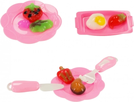 - 12 flasker gel i forskellige farver, 24 forme, bæger og pose med calciumlaktat, 4 tallerkener, 4 bakker, 2 si/skummeskeer, 2 pincetter/tænger, gryde med låg, interaktiv base, dørslag, 2 gafler, 2 skeer, 2 knive, 2 spatler/scrapere, vejledning