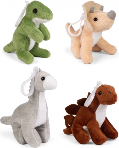 Den søde plysbamse-nøglering formet som en dinosaur vil glæde enhver lille elsker af forhistorien. Blødt materiale, praktisk løkke til nøgler og rygsæk og kompakt størrelse på 10 cm gør den til en ideel lille gave. Fås i 4 dinosaurarter.