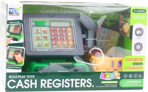 Legetøjskasseapparat med tilbehør med lys og lyde – grøn