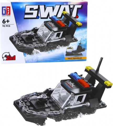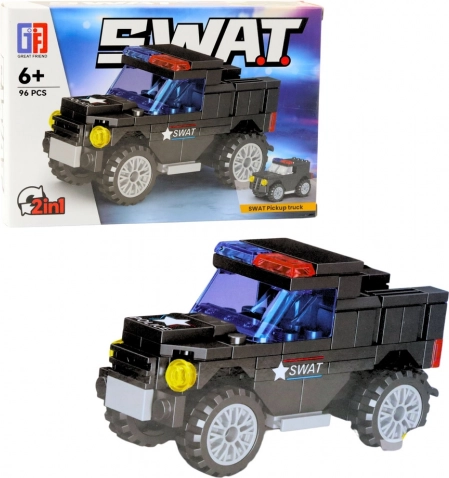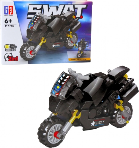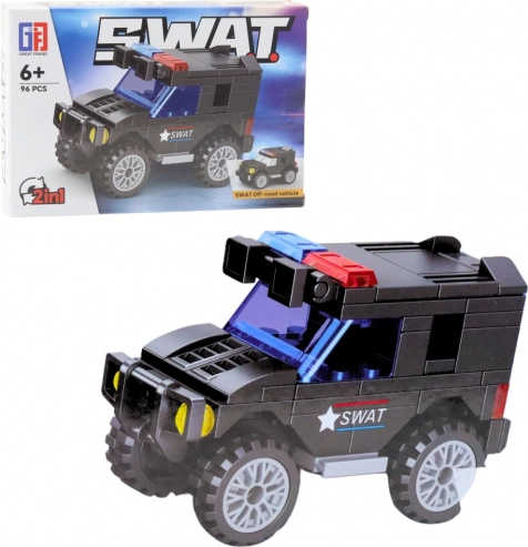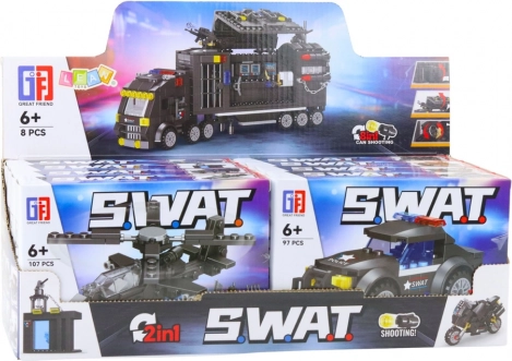 Konstruktionsbyggesæt SWAT med 92–117 dele. Byg forskellige køretøjer, realistiske detaljer, kompatibelt med andre byggesæt. Model vælges tilfældigt.