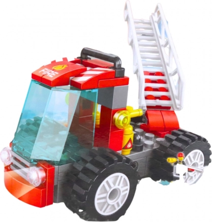 Byggesæt brandbil med bevægelig stige, 67 dele. Kvalitetsplast, kompatibel med andre klodser. Udvikler børns kreativitet og motorik.