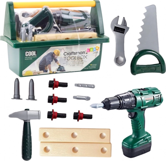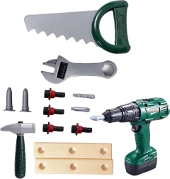Dette børneværktøjssæt i en transportabel kuffert gør det muligt for dit barn at efterligne de voksne og udforske gør‑det‑selv‑verdenen. Den batteridrevne skruetrækker efterligner rigtigt værktøj, så legen bliver attraktiv, realistisk og vækker nysgerrighed. Sættet egner sig både til selvstændig og fælles leg og lærer samarbejde, tålmodighed og hånd‑øje‑koordination.