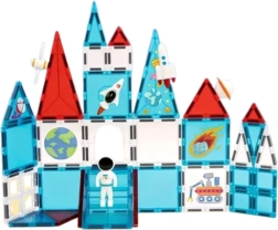Opdag en kreativ verden med magnetiske byggesæt inspireret af rummet. Stærke magneter sikrer stabile konstruktioner, de mange former fremmer kreativitet, logisk tænkning og finmotorik. Sættet med 58 dele, inklusiv astronaut, raket og dekorative fliser, lader børn skabe fantastiske rumstationer og fartøjer.