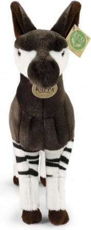 Okapien er ideel som blød sengekammerat og som pynt på børneværelset. Takket være blød og kvalitetsrig plys er den dejlig at kramme og egner sig til leg hver dag. Den imponerer med autentiske farver med striber på benene og et venligt udtryk.