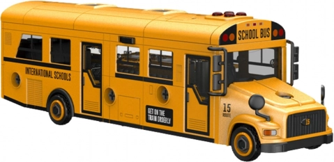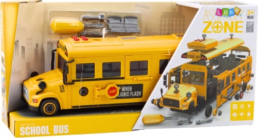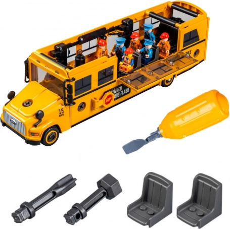 Den gule skolebus til samling og adskillelse vil glæde små teknikere og køretøjsentusiaster. Den tilbyder 48 dele, friktionsdrev på baghjulene, lys- og lydeffekter samt en praktisk skruetrækker med udskiftelige bits. Åbningsbare døre og vinduer, gummihjul og holdbar ABS-plast sikrer robusthed og realistisk leg.