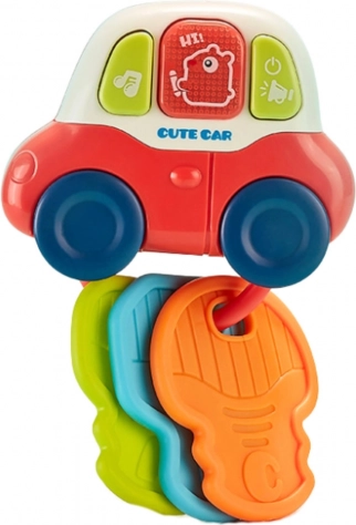 Den søde lille bil med nøgler er et fantastisk læringslegetøj til de mindste. Lys- og lydeffekter fanger opmærksomheden, stimulerer sanserne og motiverer til udforskning. Nøglerne kan nemt tages af og vaskes, så legen altid forbliver hygiejnisk og sikker.