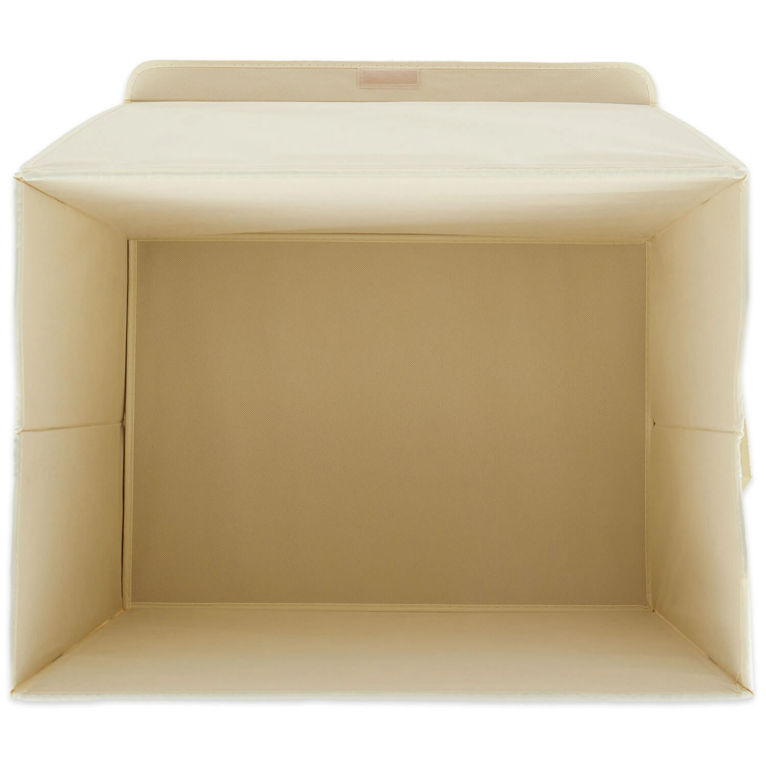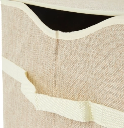 Takket være sidehåndtag er boksen let at håndtere, og når du ikke har brug for den, kan du nemt klappe den sammen og lægge den i skabet. Ydermaterialet med hør-look virker elegant og passer ind i de fleste børneværelsers indretning.