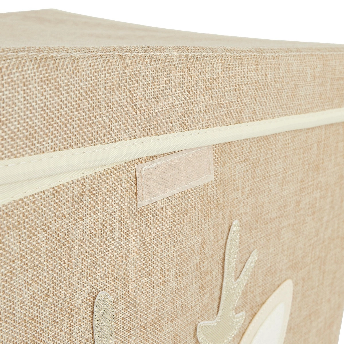 Nyd et overskueligt og hyggeligt børneværelse med opbevaringsboksen Rådyrkalven Ella. Den dekorative boks har et vipbart låg med velcro, så indholdet forbliver samlet og ude af syne. Kapacitet omkring 65 liter giver masser af plads til bamser, klodser, bøger og sæsonbetonet tøj.