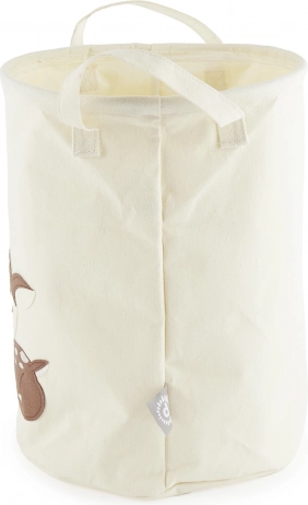 Den praktiske og stilfulde opbevaringskurv fra Bieco med rådyrmotiv skaber hurtigt orden på børneværelset. Den er lavet af robust lærredsmateriale, har en stabil form, lange håndtag for nem transport og takket være den vandafvisende PE-belægning indvendigt kan den også bruges som en vasketøjskurv. Med en kapacitet på 38 l tilbyder den rigelig plads til legetøj, tøj og tilbehør, og når den ikke er i brug, kan den nemt foldes sammen.